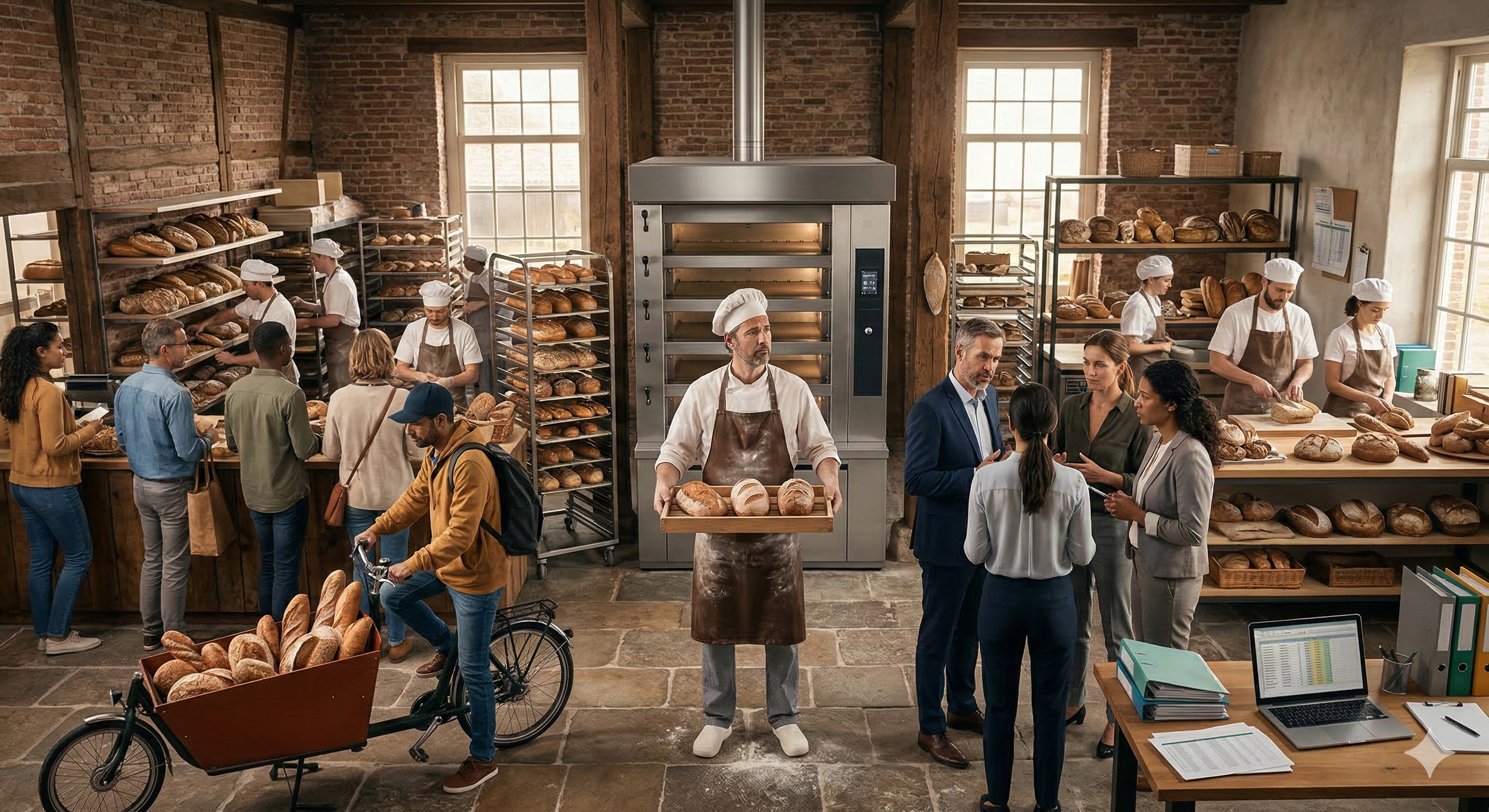 Scenario 1: De bakker kiest ervoor om meer broden te bakken en te verkopen. Medewerkers behouden hun rol, maar produceren meer broden in dezelfde tijd. De organisatie groeit in volume.